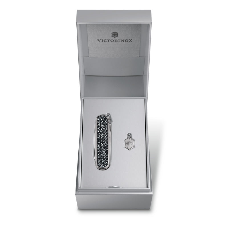Verleihen Sie Ihrem Alltag einen Hauch von Glitzer. Das Classic SD Brilliant Crystal ist mit hochwertigen Kristallen besetzt und liefert nicht nur einen luxuriösen Look, sondern auch jene makellose Funktionalität, die Sie von unseren kompakten Taschenmessern erwarten. Jedes Stück glänzt mit einzigartiger Schönheit. Ein abnehmbarer Anhänger und die Geschenkschachtel vollenden die exklusive Ästhetik. Eine glitzernde Neuinterpretation unserer Ikone.